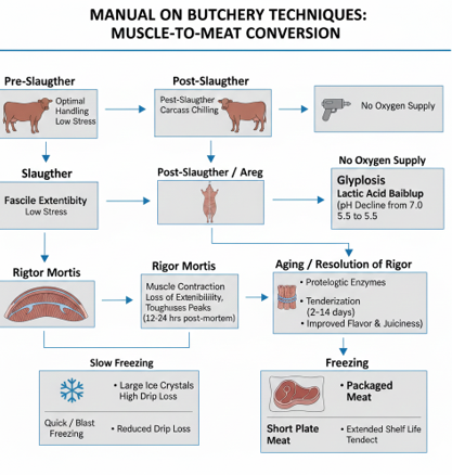 📸 Visuals: flowchart of the muscle-to-meat conversion process.